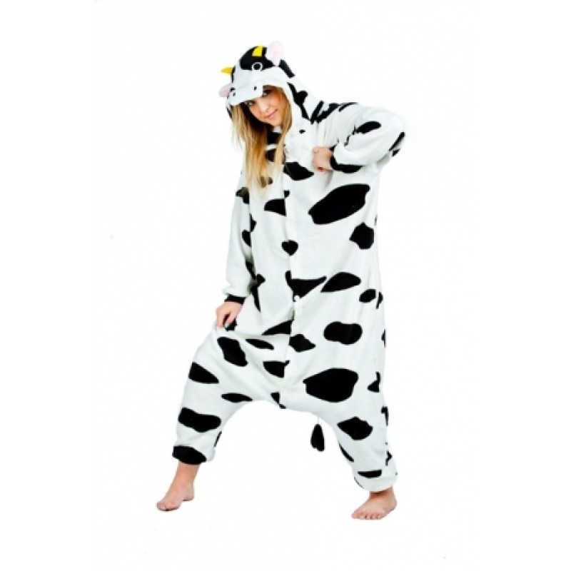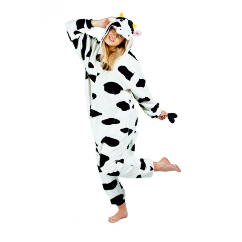 Kigurumi ko – en söt, lekfull och varm overall som du kan bära hemma eller på en temafest. Dräkten har unika detaljer som ger en känsla av komfort: